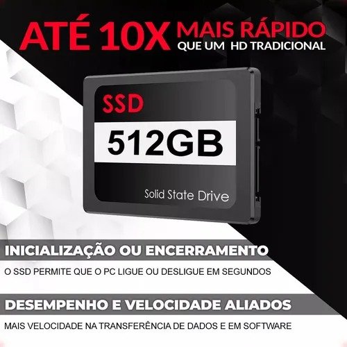 O SSD de 512GB oferece armazenamento rápido para o sistema operacional e os jogos.